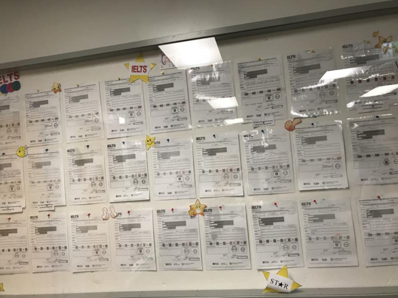 生徒さんのIELTSのスコアがずらりと並んでいます!